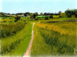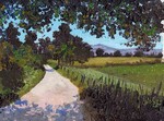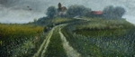 2009Ergens tussen Schin op Geul en Oud-Valkenburg. Het is eigenlijk een herhaling van 'Boerderij vlakbij Valkenburg'.Diezelfde boerderij en het landschap inspireerde mij om hetzelfde nog eens te maken.
